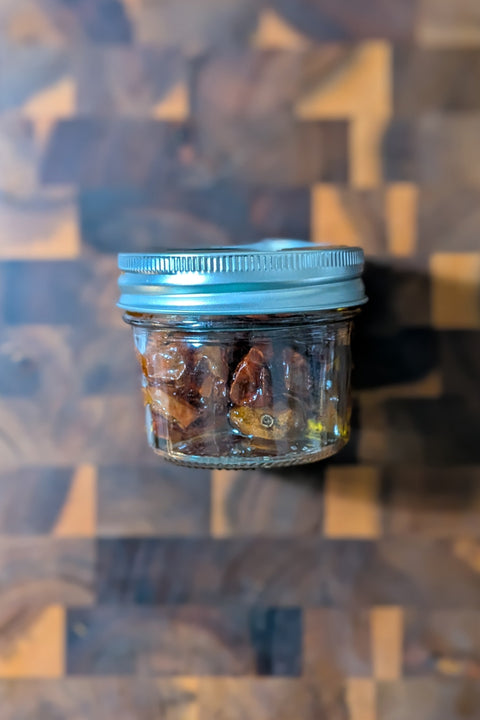 Slow dried in small batches, preserved in EVOO and light salt. Great for charcutier boards and late-night snacking.